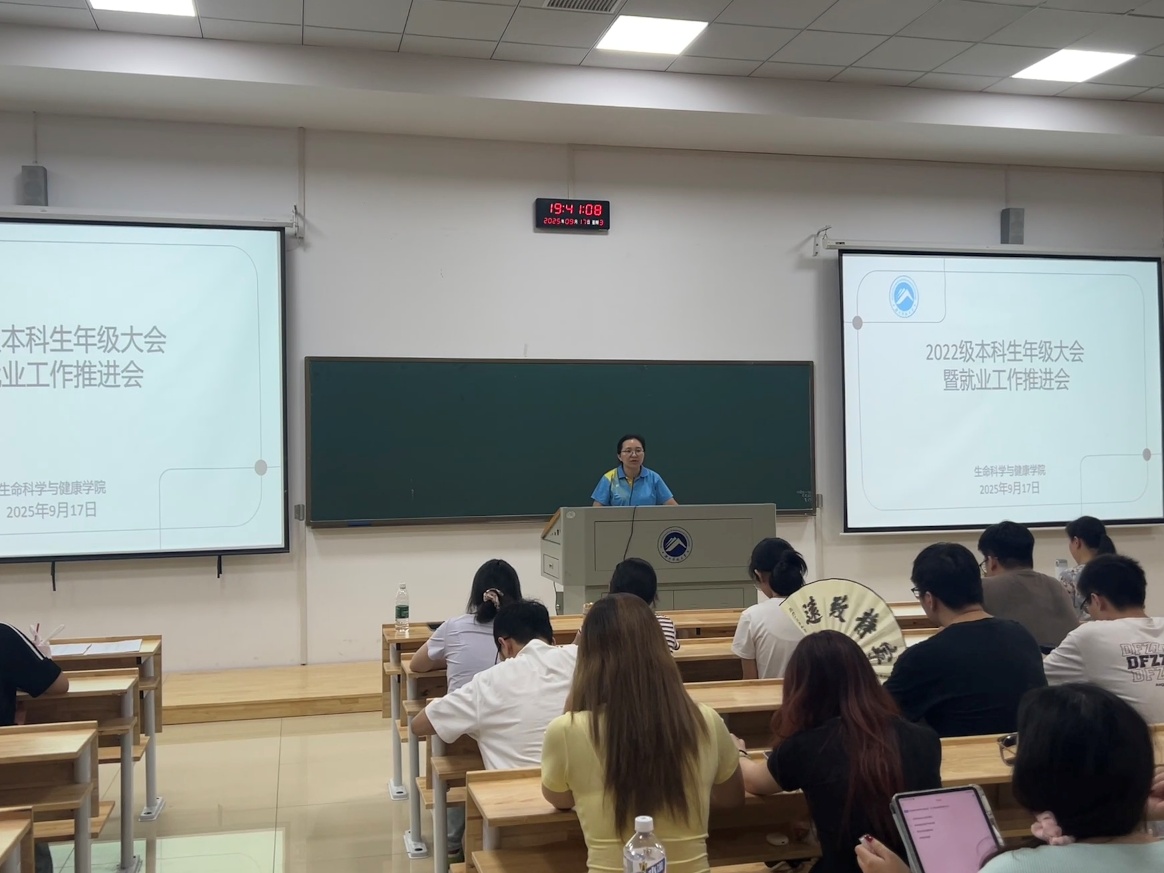 为扎实推进2022级本科生毕业季学业规划与就业指导工作,9月17日晚7点半,yl23411永利集团官网于敏行楼C512召开年级大会暨就业工作推进会。会议由2022级辅导员易临群主持,学院党委副书记舒艳出席并讲话,全体2022级本科生参会。