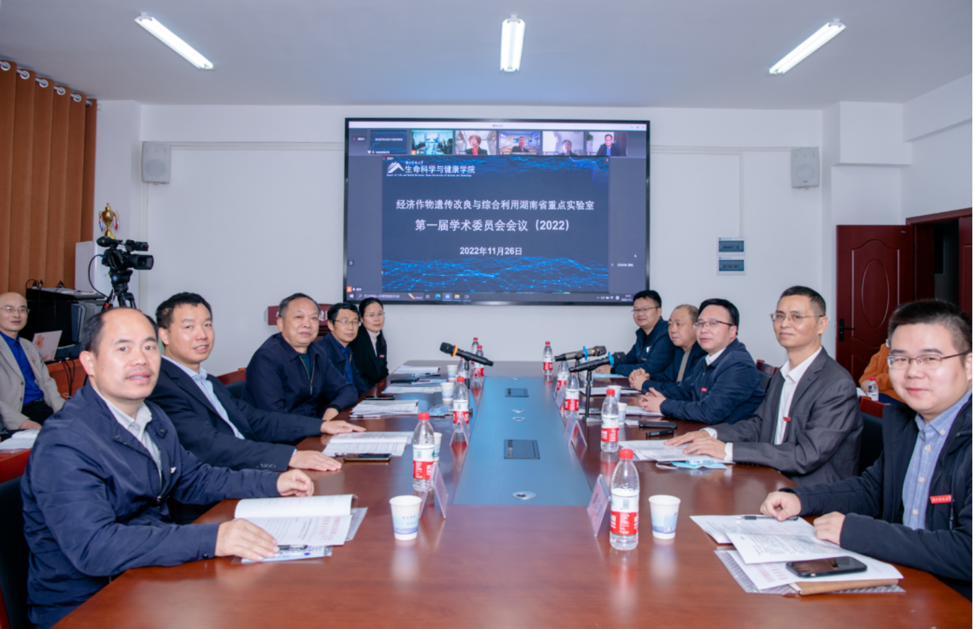 2022年11月26日,在湖南科技大学知行楼A140室召开了“经济作物遗传改良与综合利用湖南省重点实验室”(以下简称实验室)2022年学术委员会会议。实验室学术委员会成员严建兵教授(华中农业大学)、赵运林教授(中南林业科技大学)、王幼平教授(扬州大学)、华玮研究员(中国农业科学院油料作物研究所)、刘宝辉教授(广州大学)、许莉萍研究员(福建农林大学)、周美亮研究员(中国农业科学院作物科学研究所);线下参会委员有:刘忠松教授(湖南农业大学)、刘选明教授(湖南大学)、严明理教授(湖南省农业科学院作物研究所)和湖南科技大学的王海华教授出席会议。出席会议的还有湖南科技大学纪委书记郭时印教授、湖南科技大学科技处处长万文教授。实验室部分学术骨干列席了会议。