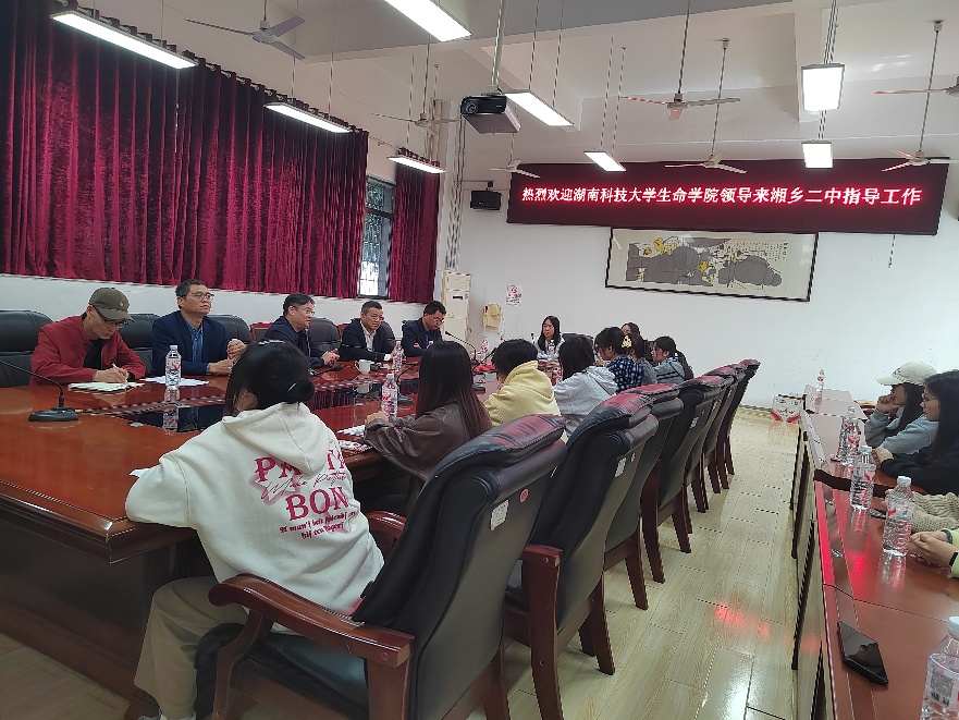 近日,我院党委书记龙赢、生物科学系主任唐新科及校级督导员孙远东一行赴湘乡市二中、娄底市新化县资江中学、娄底市第一中学,对2022级生物科学专业教育实习工作进行全面检查与指导。